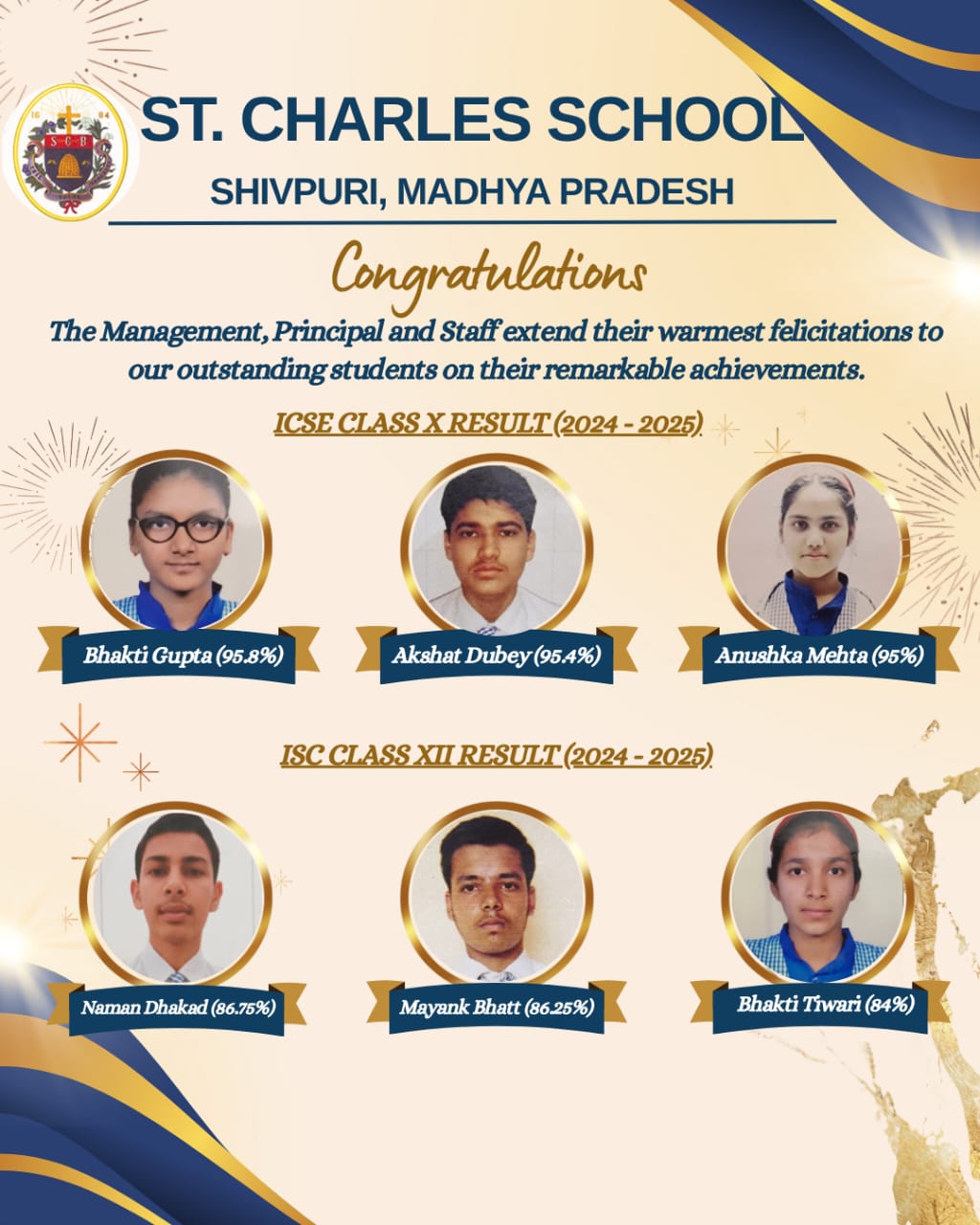 St. Charles school Shivpuri, was established on 1July 1992 in a village, District called Shivpuri, Pohari Road , by the sisters of St. Charles Borromeo, Bangalore Province in the diocese of Jhansi. It is an unaided minority institution, affiliated to CISCE open to children of all communities with a special responsibility of holistic formation of a child...